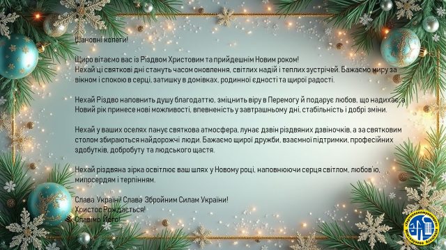 Щиро вітаємо вас із Різдвом Христовим та прийдешнім Новим роком!